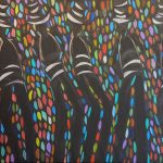 o an old broken-down chair. At the age of 13, she studied under Freda Artman, an established artist in Trinidad. In 1998, Jacqueline received a degree in Physical Therapy from Lynn University, USA, but art remains her primary interest. Guzman’s style is a combination of primitivism and modern techniques, with simplified forms and bold colour. Her work is always visually stunning, teeming with dancing figures and cheery pan-men, and can be found in businesses and private collections both locally and throughout the world.