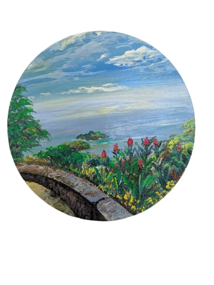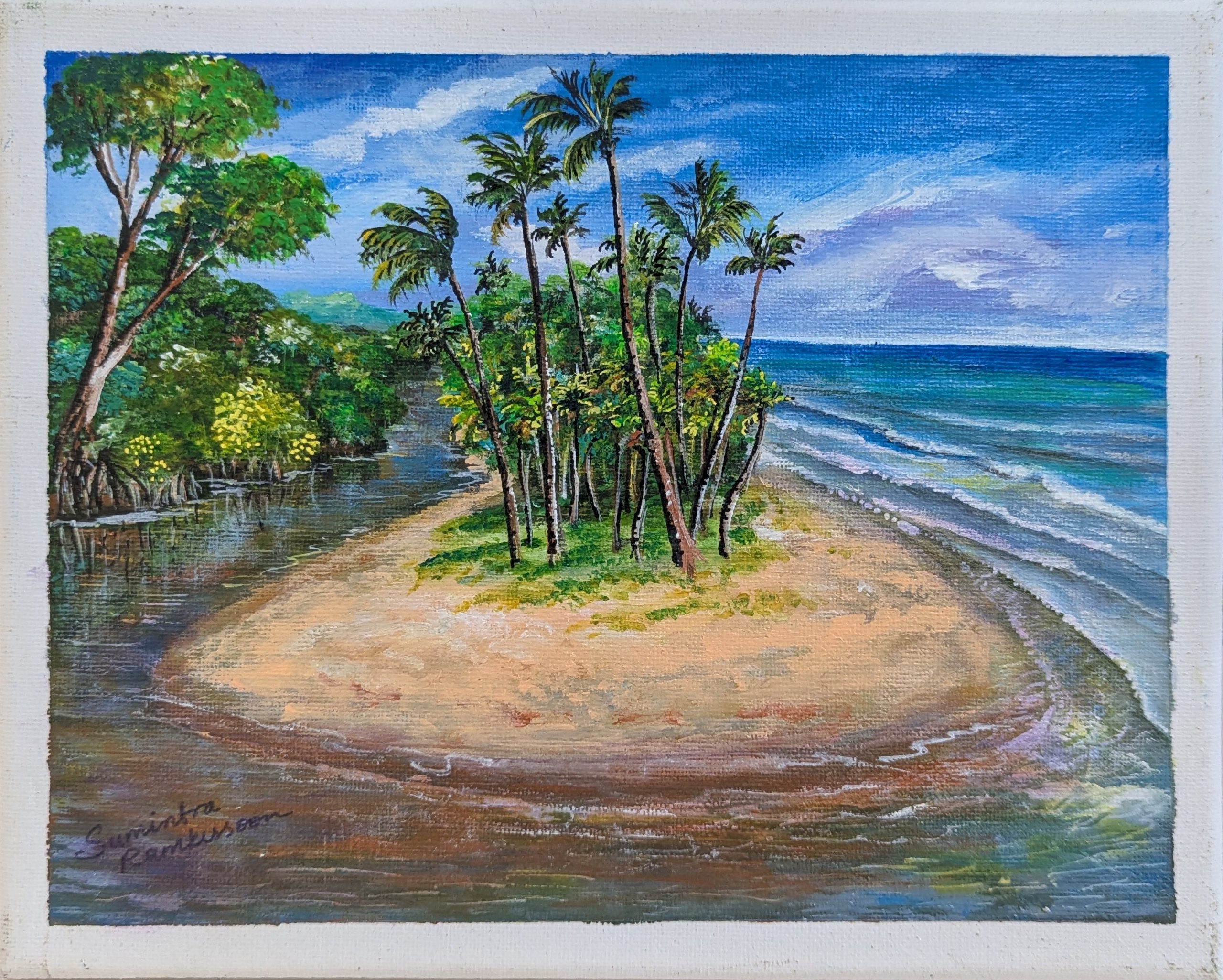 Sumintra grew up in a humble home amongst eleven children. She attended the Clarke Rochard Government School, the Siparia Junior Secondary School and the Barrackpore Senior Comprehensive. It was here she pursued the subject of Art because of her original love for it she obtained a distinction in the subject. However, she was unable to pursue a career in Art because of various reasons. After several years of marriage Art was the furthest thing from her mind. Her husband, Kumar, surprised her one-day by purchasing materials for her to paint once again. He knew her favorite medium was acrylic and she loved to do nature scenes. Her work was kept private for a couple of years but was later encouraged by prominent persons to show pieces publicly.