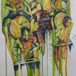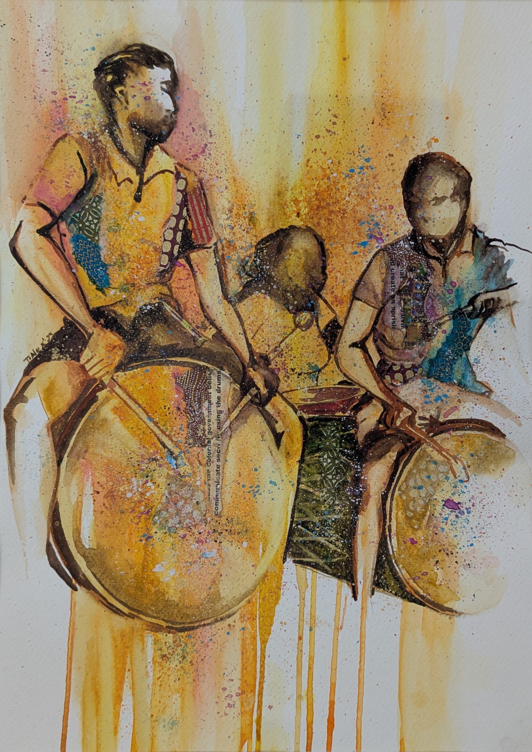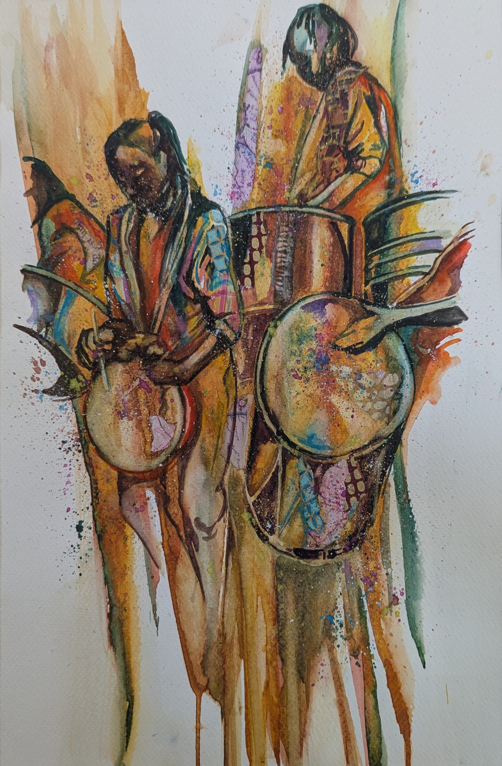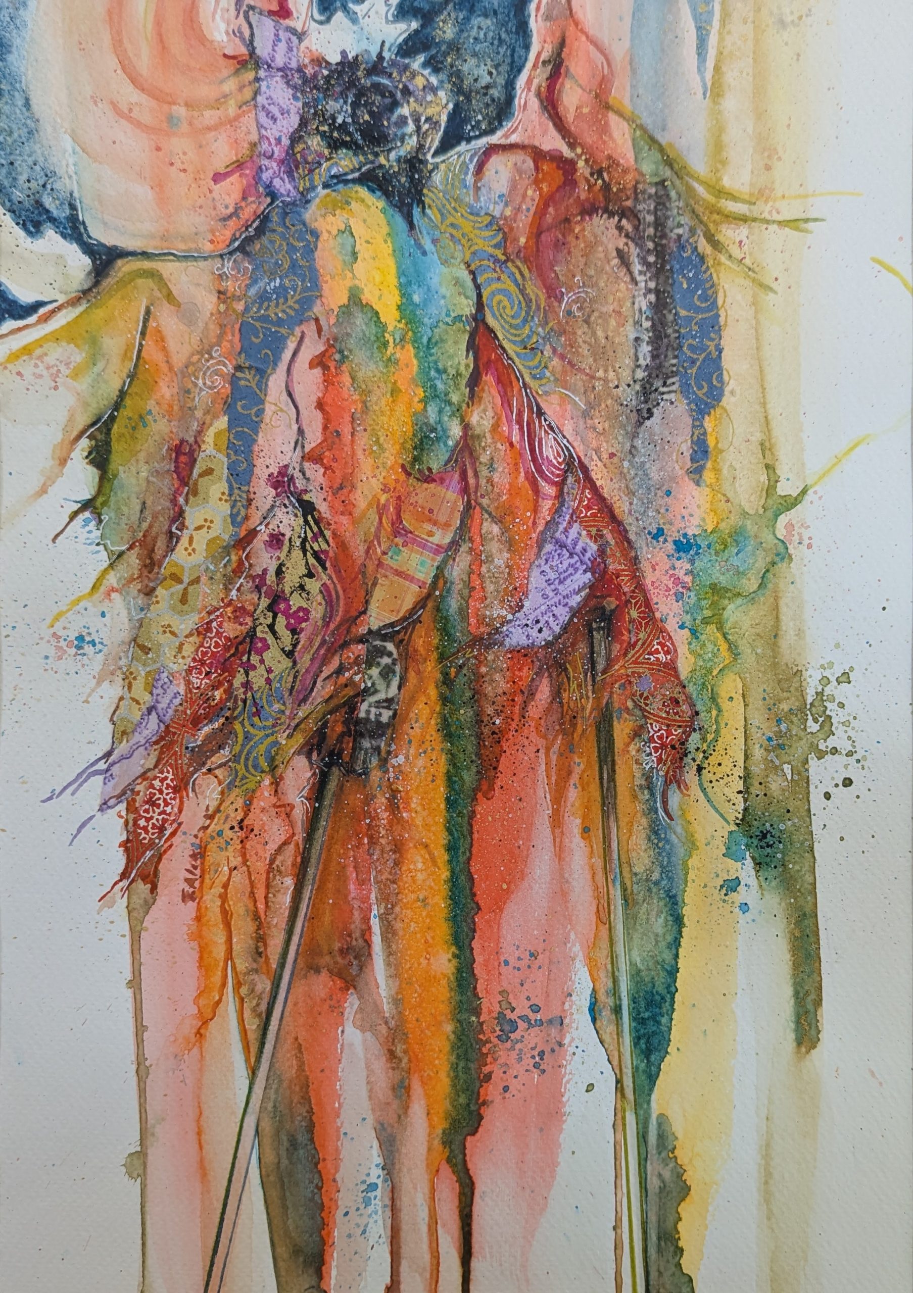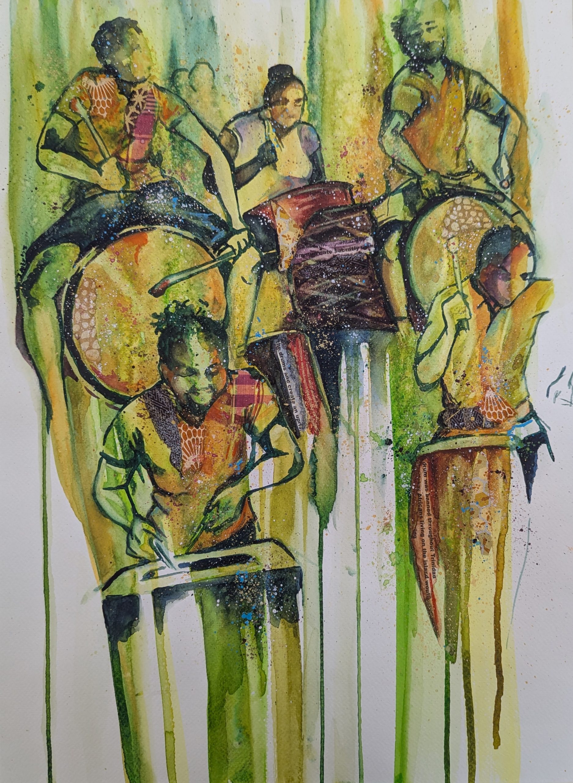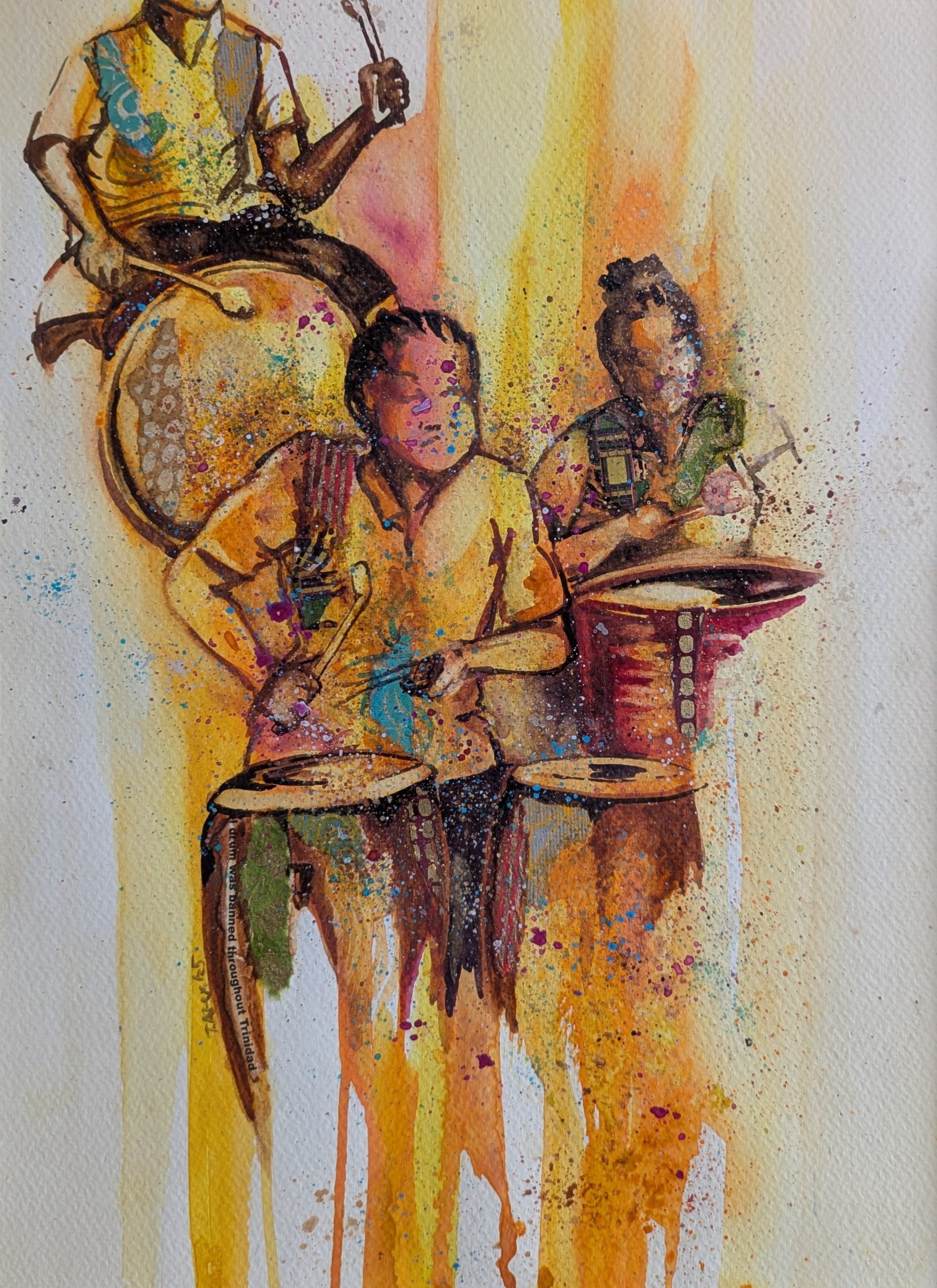 Born in Trinidad, Tessa has always enjoyed creative expression, and can remember wanting to be an artist since childhood. Tessa has an MFA in Cultural Studies, and earned her associates degree in Fashion Design and Merchandising at the International Academy of Design and Technology. She produced her own label for close to a decade, and during that time represented Trinidad and Tobago at the Pret a Porter and Igedo fashion weeks; she also worked on several costuming and design projects including “Jean and Dinah”, earning a nomination for best costuming at the Cacique awards. Tessa has worked in oils, ink, conté and graphite, but is primarily a water colourist. She feels the colour and textures capture the Caribbean essence, while also appreciating its suitability to tropical conditions; fluid, quick drying, and environmentally friendly. She often adds elements of collage (handmade papers and/or newspaper clippings) to many pieces, resulting in an almost three- dimensional appearance.