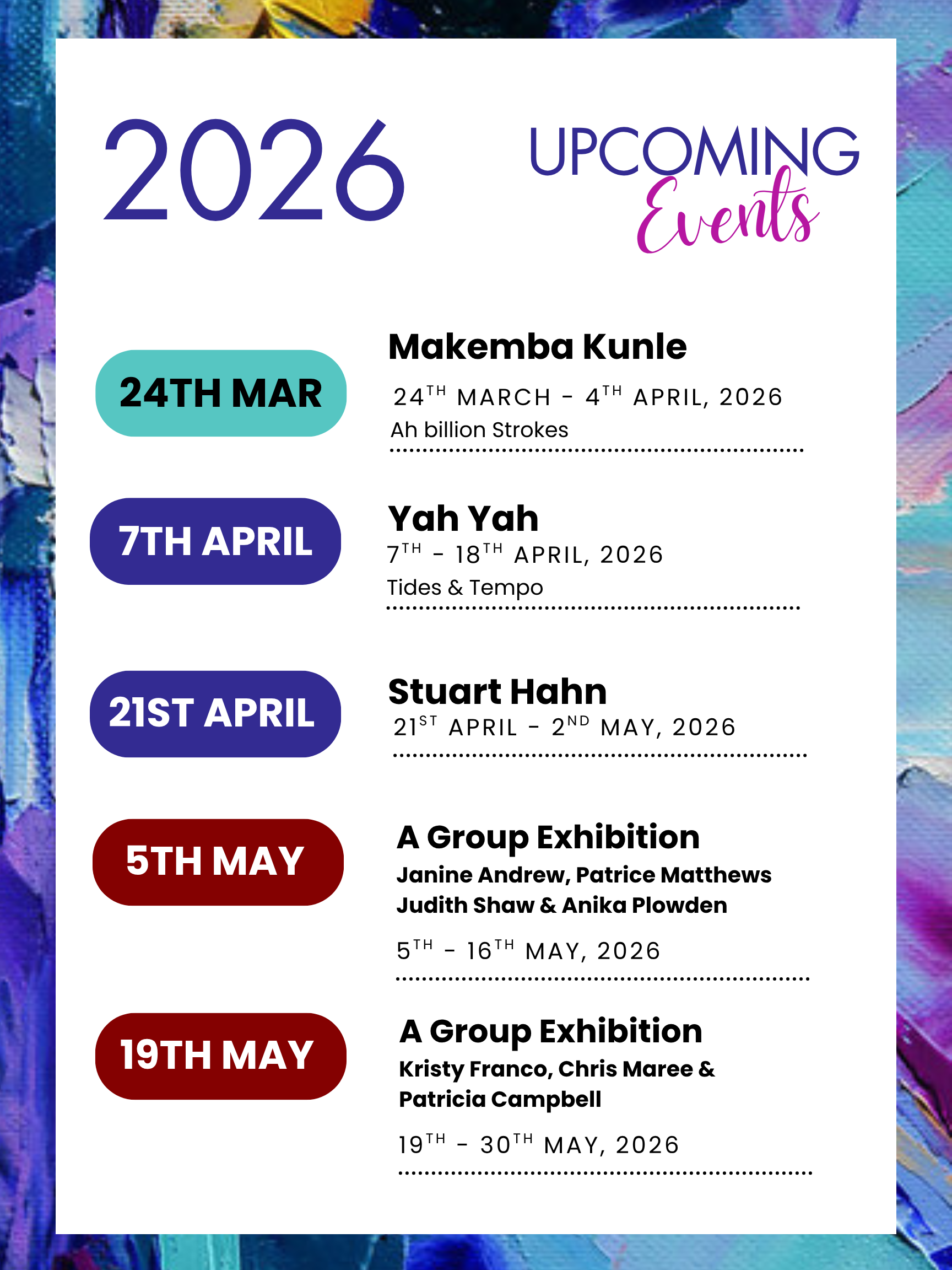 Here’s our schedule of upcoming activities 2026